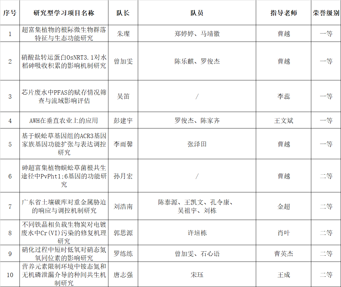 根據《中華環境保護基金會TOTO水環境專項基金中山大學環境科學與工程學院獎學金資助辦法》,經學生組建團隊申報、立項、結題,學院組織評定,本著“公平、公正、公開”及“優中選優”的原則,評選出中山大學研究型學習獎學金獲得者名單如下: